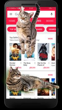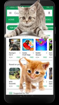 "Cat On Screen " is an application, which displays a very realistic animation of a cat on the screen of your phone. A cat try to grab icons and run programs. You can browse your phone / tablet and the cat will still be visible. To stop the app, start "Cat On Screen" again or by pressing the delete button in the Android notification bar.