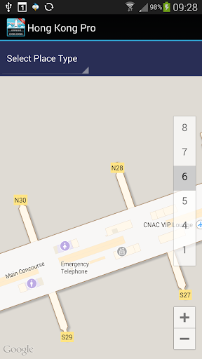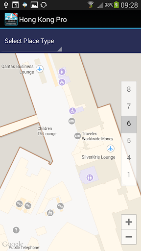 • Indoor Karte zeigt Ihre aktuelle Position innerhalb des Flughafens (verwendet Google Maps)