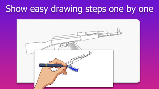How to Draw Weapons and Daggers step by step includes a wide range of drawing weapons with instructions, so you just need to download this app and choose the gun you want to draw. Following are the weapons you can draw easily.