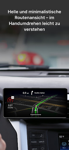 - Informationen zur Fahrt: Geschätzte Ankunftszeit, Geschwindigkeit, zurückgelegte Wegstrecke, Beschreibung des nächsten Fahrmanövers und vieles mehr.