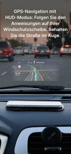 1. An einem klaren Tag reicht die Bildschirmhelligkeit des Geräts in der Regel nicht aus, um eine ausreichende Spiegelung für den HUD-Modus zu erzielen. In diesem Fall können Sie die App im Standardmodus nutzen, während das Telefon in einer Halterung fixiert ist, ODER Sie nutzen unser HUDWAY Glass Zubehör (mehr darüber erfahren Sie unter hudwayglass.com). Nachts, in der Abenddämmerung oder bei trübem Wetter ist die Spiegelung normalerweise gut wahrnehmbar.