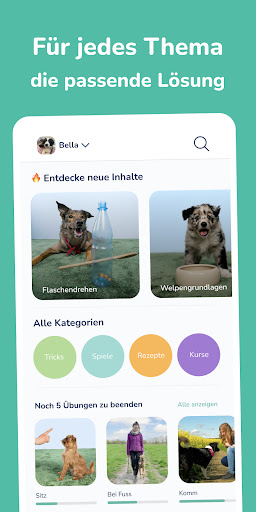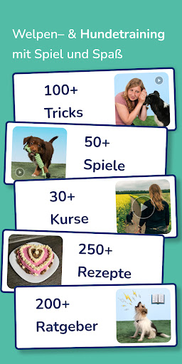 Du bekommst täglich von uns ausgewählte Quiz, Tricks, Spiele, Rezepte & Kurse. Individuell für euer perfektes Welpentraining oder Hundetraining.