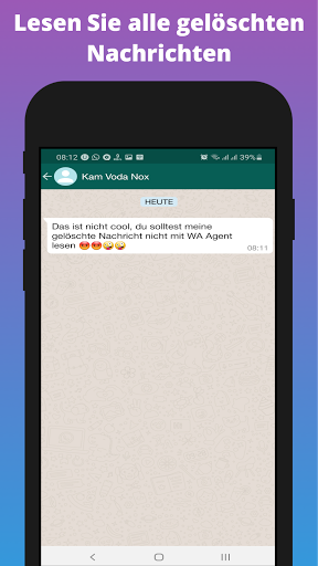 ⚠ Textnachrichten werden durch Ihre Benachrichtigungen wiederhergestellt. Wenn Sie also einen Chat stumm geschaltet haben oder gerade eine Nachricht in der Messaging-App ansehen, bevor sie gelöscht wird, erhalten Sie keine Benachrichtigung, sodass WA Agent sie nicht speichern kann! Dies bedeutet auch, dass Benachrichtigungen / Nachrichten nicht wiederhergestellt werden können, bevor Sie diese App heruntergeladen haben.