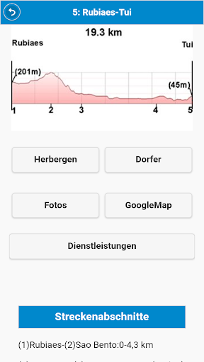 -Inforamationen zu den jeweiligen Ortschaften entlang des Jakobsweges
