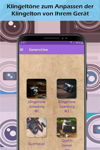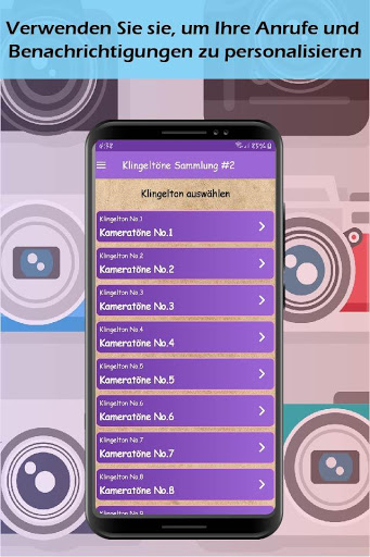 Eine Internetverbindung ist für den korrekten Betrieb der Kameratöne-Anwendung erforderlich. Genießen Sie unsere neue App mit Kameratönen für Mobiltelefone (verwenden Sie diese als Klingeltöne, SMS-Töne, Alarm oder Benachrichtigung) und genießen Sie diese außergewöhnlichen Klingeltöne. Ohne Internet- oder Datenverbindung funktioniert es nicht richtig.