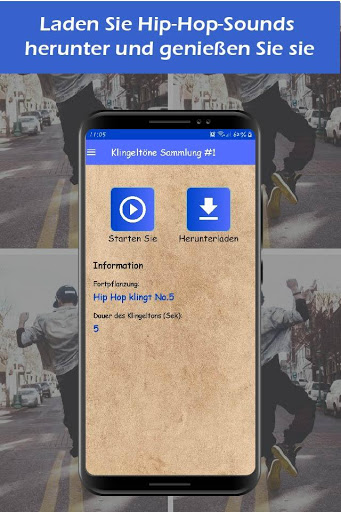 Eine Internetverbindung ist für das ordnungsgemäße Funktionieren der Hip-Hop-Töne erforderlich. Genießen Sie unsere neue App mit Hip-Hop-Tönen für Mobiltelefone (verwenden Sie sie als Klingeltöne, SMS-Töne, Alarm oder Benachrichtigung) und genießen Sie diese hervorragenden Klingeltöne . Ohne Internet- oder Datenverbindung funktioniert es nicht richtig.