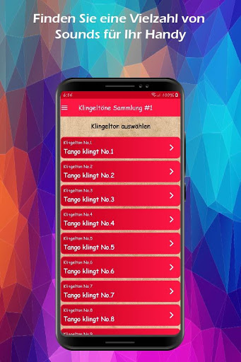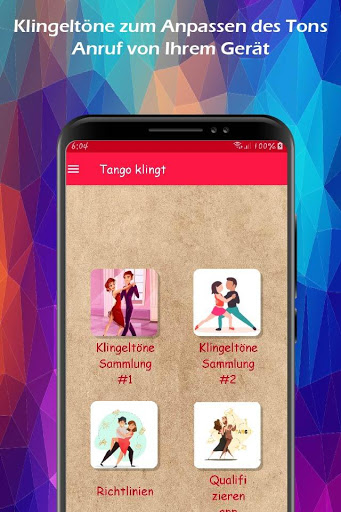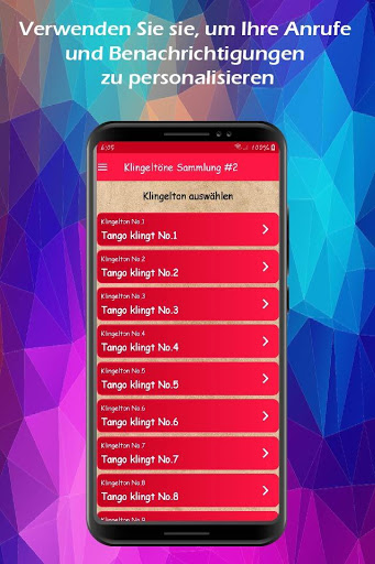 Unsere neue Tango-Klingeltöne-Anwendung kann jetzt im Play Store heruntergeladen werden. Dort finden Sie eine Vielzahl von Klingeltönen, mit denen Sie Ihr Mobilgerät personalisieren können (verwenden Sie sie als Klingeltöne, SMS, Benachrichtigungen oder Alarmtöne). Laden Sie sie jetzt herunter und genießen Sie seinen Inhalt.