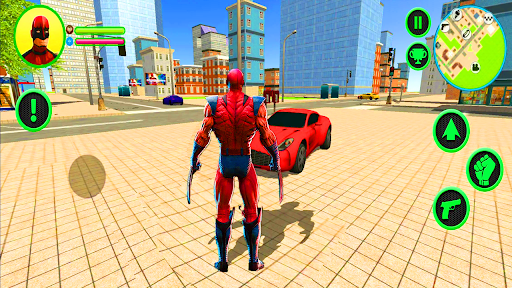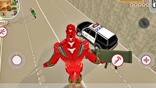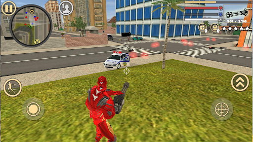 Super Iron Rope Hero Panzerkriminelle Stadt -Simulatorin in der dritten Personansicht (und FPS -Modus), wo Sie erstaunliche Autos oder ein Motorrad fahren.