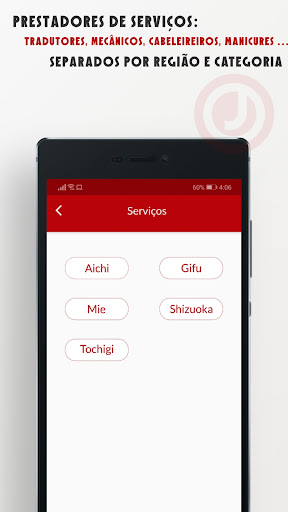 Eine Anwendung von Produkten und Dienstleistungen für die brasilianische Gemeinschaft in Japan.