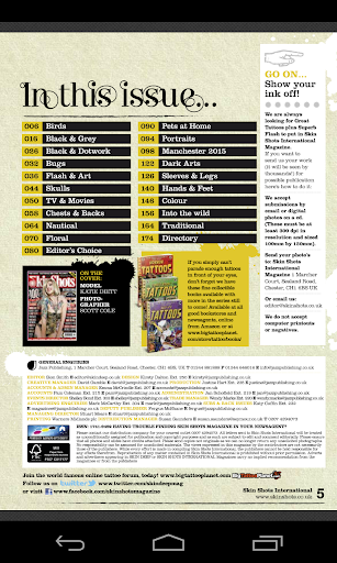 Skin Shots International is a sister title to Skin Deep and acts as a 'reference' magazine featuring top quality tattoo work from around the globe. Also included is a Directory of many UK tattoo studios to help you research the next studio for your next masterpiece. Being a 'Pictorial' magazine, Skin Shots breaks down the language barriers therefore justifies the title 'International'!