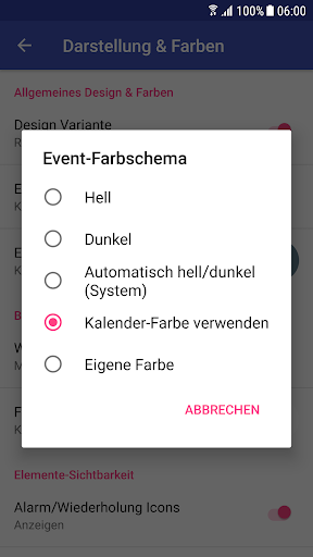 • Farb-Thema kann dem System-Nachtmodus folgen falls aktiviert