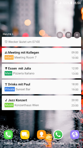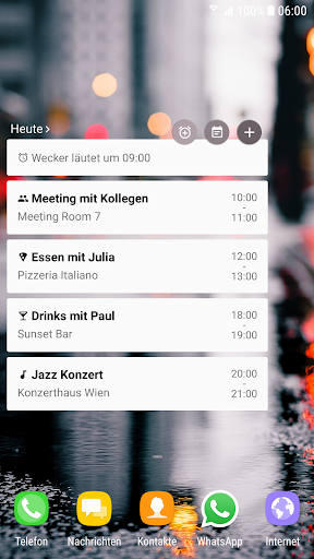 • Schnell-Zugriff auf das Hinzufügen von Terminen, die Kalender App und Wecker
