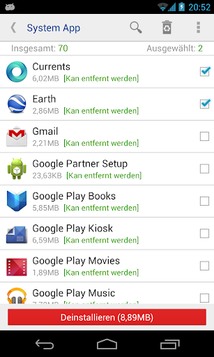 Achtung: Zum deinstallieren von System-Apps braucht man Root, das wir aber nicht mitliefern.