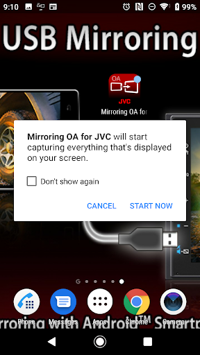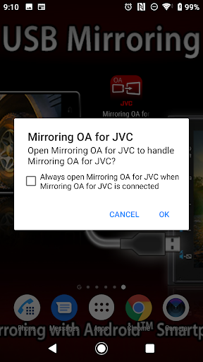 It is a mirroring application that can display the screen of your Android smartphone on the JVC car AV receiver. Operation is possible with the touch panel of the car AV which connected with USB.