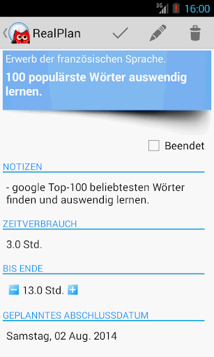 Hier kannst du wirklich komplizierte Pläne mit Unteraufgaben schaffen. Anhand der Schaubilder siehst du jederzeit die Geschichte und Analyse deiner Fortschritte.