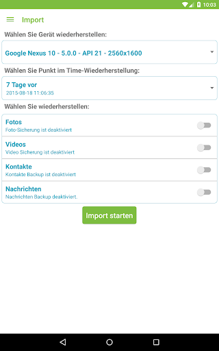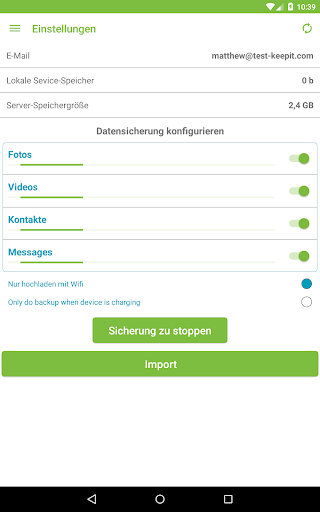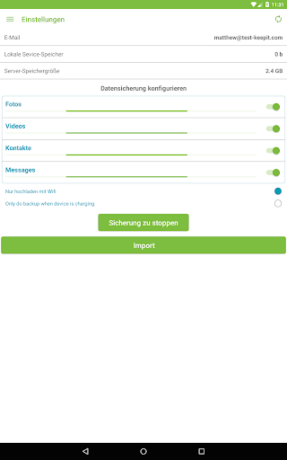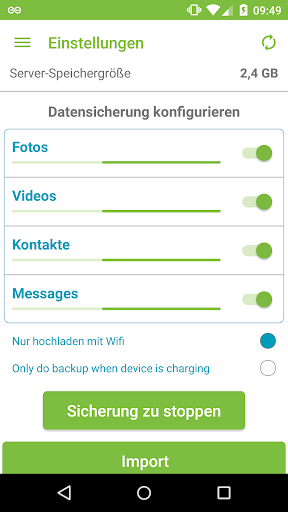 o automatische Sicherung von Fotos, Kontakte und Videos