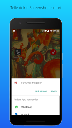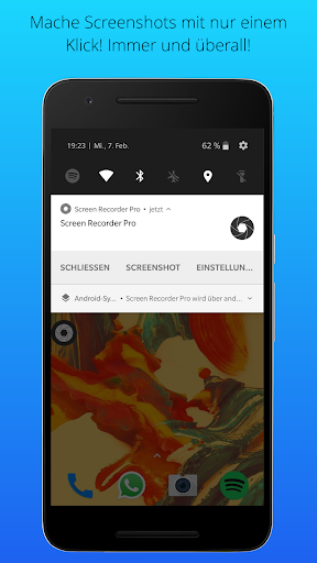 Die Zeiten mit komplizierten Tastenkombinationen, nur um einen Screenshot oder ein Bildschirmvideo zu machen, sind vorbei. Mit Screenshot Pro kannst du Screenshots und Bildschirmvideos mit nur einem Klick machen und mit jeder beliebigen App teilen oder ausschneiden. Screenshot Pro wird, sobald es gestartet ist, in die Benachrichtigungsleiste verschoben. D. h. es ist immer zugänglich, egal auf welchem Bildschirm du dich befindest. Durch Klicken auf die Buttons des Icons, kannst du dann immmer Screenshots und Bildschirmvideos aufnehmen. Alle Screenshots und Bildschirmvideos werden in der Galerie gespeichert.