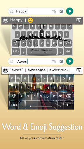 A beautiful London City Keyboard with amazing features is designed for those who like sending message with GIF, emoticon and emoji. It is a MUST HAVE free android stylish emoji keyboard.