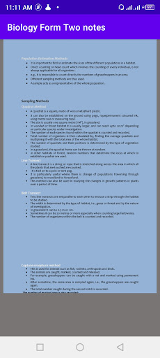 Die Anwendung zeigt die folgenden Themen -klassifizierende II -Ekologie -Wachstums und Entwicklung in Pflanzen und Tieren -Reproduktion -Polution Populationsschätzungsmethoden -Food-Kette -Konstruktion und Verwendung dichotomer Schlüssel
