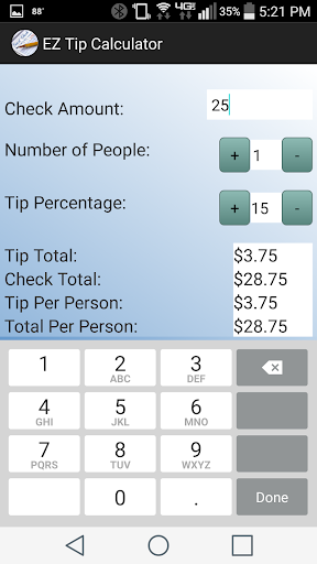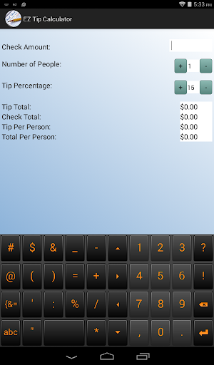 Easily calculate your restaurant bill with tip, and split among multiple people.