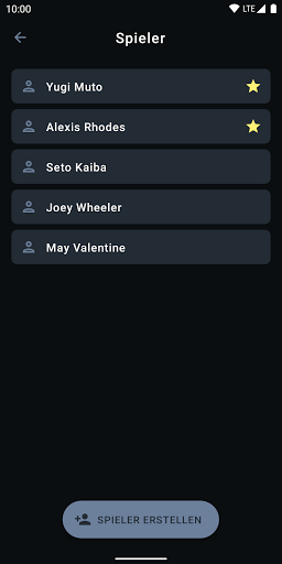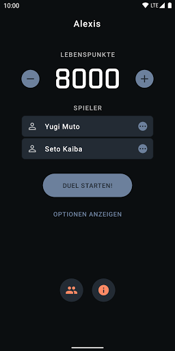 • Spielernamen und -Decks wählen - Eingabe über ein Textfeld oder Auswahl gespeicherter Spieler für einen schnellen Duel-Start