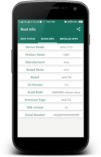 Die Root-Info bietet auch grundlegende Hardwareinformationen Ihres Geräts wie Build ROM, Modellname, Seriennummer.