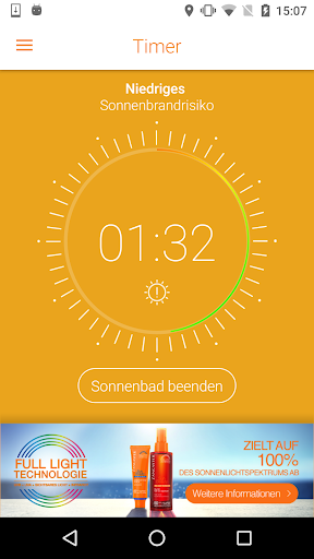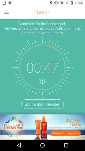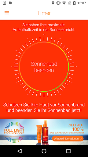 Wenn Sie Ihren Standort freigeben und Ihre Informationen bezüglich Ihres Hauttyps und des verwendeten Lichtschutzfaktors (LSF) eingeben, kann unser Sun Timer Ihnen sagen, wann sie erneut Ihren Sonnenschutz auftragen sollten! Machen Sie sich keine Sorgen mehr. Wenn Ihre maximale Zeit für das Sonnenbad erreicht ist, wird ein Ton erklingen um Ihnen mitzuteilen, dass es Zeit ist, Ihren Sonnenschutz erneut aufzutragen oder aus der Sonne zu gehen: