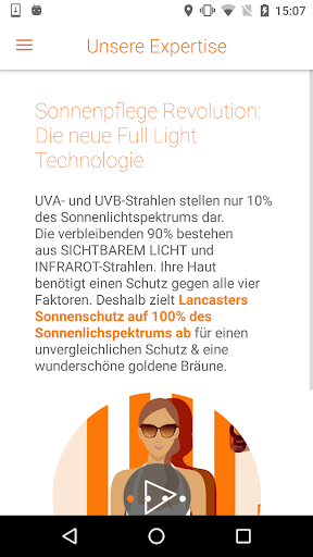 Mit der Lancaster Sun Care App, können Sie die Zeit, die Sie der Sonne ausgesetzt sind im Blick behalten - für einen besseren Schutz Ihrer Haut! Geben Sie einfach Ihren Standort, den verwendeten Sonnenschutzfaktor sowie Ihren Hauttyp ein und die App wird Ihre ideale Zeit für das Sonnenbad berechnen.