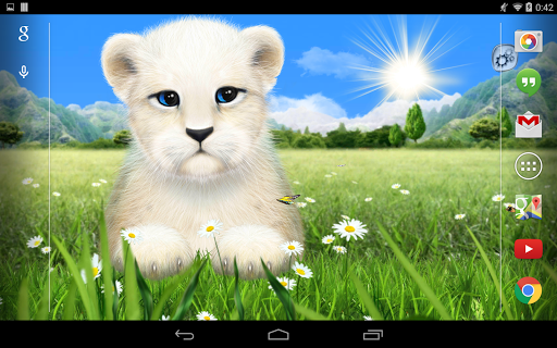 A wild white lion cub on your home screen! He lives on your desktop, watches your action, sleeps, moves and won't appreciate when you try to touch him :) Enjoy amazing environment - realistic day time and smooth transitions between sunrise, day, sunset, and night; blowing wind and clouds moving in the sky. (Most of these features are available only in the Full version)