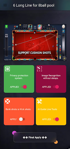 Wenn Sie ein 8ball -Poolspiel spielen, verlieren wir oft das gesamte Spiel aufgrund eines kleinen Fehlers.Die im Spiel bereitgestellte Richtlinie ist zu kurz und das macht uns blind, wenn Sie lange spielen.Es ist, als hätten Sie magische Augen mit einem verlängerten Ballweg nach Präzisionsmessung und Winkelberechnung..