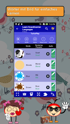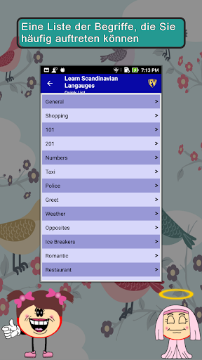 Lernen Sie skandinavische Sprachen SMART Guide ist eine umfassende Sprachlern-App. Es ist von Anfänger bis hin zu Expertenebene konzipiert. Die Offline-Sprachlern-App ist mit 2135 essentiellen Wörtern und Phrasen ausgestattet, die ordentlich unter 55 nützlichen Kategorien gestapelt sind. Features der App sind Quick List, EduBank, Quiz, Contribute, Potpourri, Switch Lingo und Suche. Die App hat Sprachen wie Englisch, Schwedisch, Dänisch, Finnisch, Norwegisch und Isländisch. Es enthält Aussprache und Phonetik von Wörtern für einfaches Lernen.