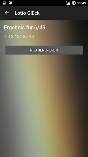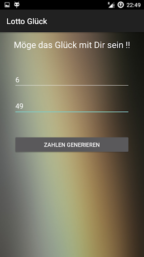 Versuche Dein Glück und generiere mit unserem neuen Lottozahlen Generator für Android Deine eigenen Lottozahlen. Es ist möglich aus verschiedenen Zahlenbereichen zu wählen. Wenn Du die Zahlen 6 aus 49 benötigst, dann gib einfach 6 und dann als Zahlenbereich 49 ein und generiere die Zahlen.