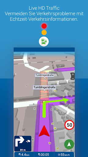 - Live HD Traffic – die Echtzeit-Verkehrsinformationen - Vermeiden Sie Staus und unnötige Verzögerungen auf Ihrer Reise. Automatische Neuberechnung. (verfügbar für ausgewählte Länder).