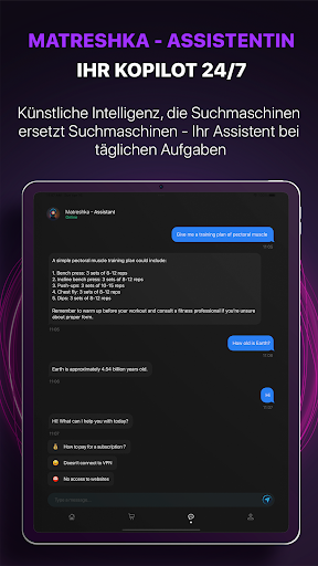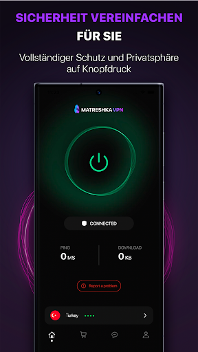 VPN Matreshka - Sicheres Internet, wo immer Sie sind. Ob Mobilfunkverbindung oder öffentliche Wi-Fi-Punkte, Ihre Daten sind durch ein Ende-zu-Ende-Verschlüsselungsprotokoll sicher geschützt. Schnelles VPN ohne Geschwindigkeits- oder Traffic-Limit: Streaming, Filme und Serien, Spiele - keine Pufferung und kein Einfrieren.