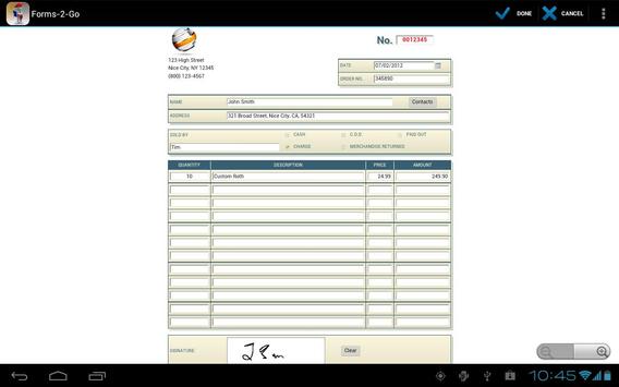 - Forms can contain Signature panels, so you will capture customers signature directly on mobile device;