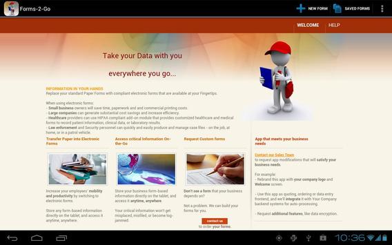 Replace your Paper or Computer forms with similar forms that are available at your Fingertips. Store any form-based information directly on the tablet, and access it anytime, anywhere. Your critical information won't get misplaced, misfiled, or become log-jammed.