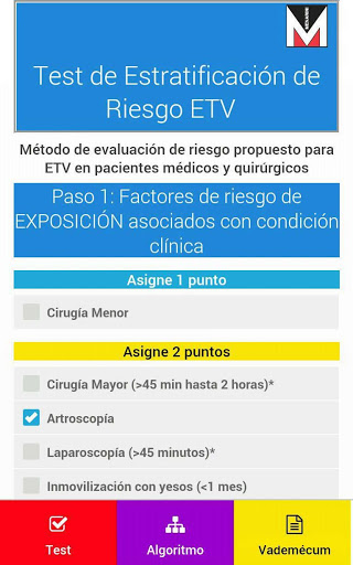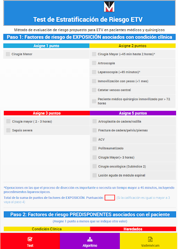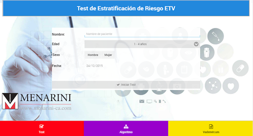 Grupo Menarini ha desarrollado una fácil aplicación para el Test de Estratrificacióde riesgo de de ETV, método de evaluación de riesgo propuesto para ETV en pacientes médicos y quirúrgicos basado en los estándares internacionales.