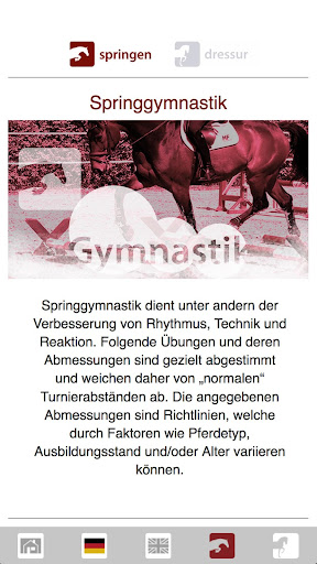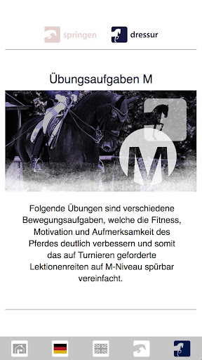 Endlich gibt es eine App für Pferdetraining aller Leistungs- und Altersklassen. Sie beinhaltet mehr als 70 grafisch unterstütze Übungsbeispiele für Dressur und Springpferde sowie eine umfangreiche Turnier – Check – Liste. Regelmäßige kostenlose Updates bringen Abwechslung in ihr zukünftiges Training. Die App funktioniert unabhängig vom örtlichen Internetzugang, da sie offline und ohne weitere Registrierungen arbeitet.