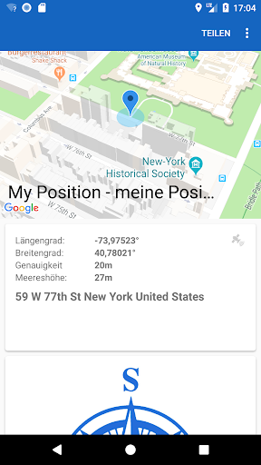 Schau dir an wo genau du dich befindest. Diese App beinhaltet auch einen Kompass und zeigt dir deine aktuelle Position / deinen Standort auf Google Maps