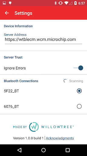 Microchip's BLECM (Bluetooth Low Energy Client Module) Development Kit is designed to enable you to quickly and easily connect an embedded system for monitoring and control using this Android application which also serves as a gateway for remote monitoring/control with a cloud-based server, such as Amazon Web Services(AWS). This will reduce the learning curve and help you get connected using Bluetooth quickly. The BLECM Development Kit is available from Microchip Direct.
