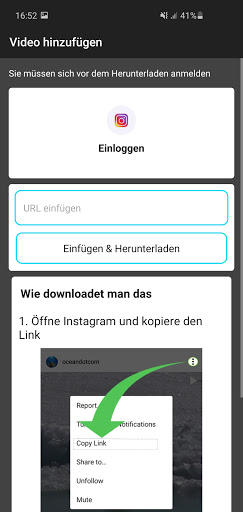 - Mit Photo & Video Downloader für Instagram können Sie Videos oder Fotos herunterladen. Alle Fotos werden in der Galerie gespeichert.