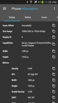 Network Interface, Device information, WiFi, Bluetooth, CPU, GPU, Memory/RAM, Android Build details, Display, Battery, Sound, Cameras, and all Sensors!