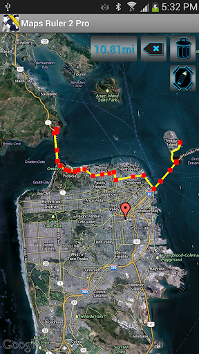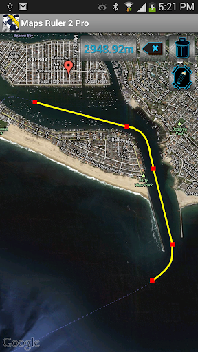 Maps-Lineal hilft Ihnen dabei, die Entfernung zwischen ausgewählten Punkten zu berechnen.