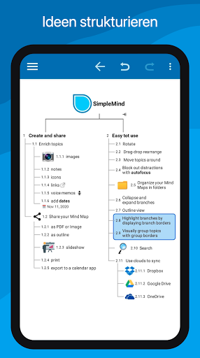 ○ Synchronisieren Sie Mindmaps mit Ihren Android-Geräten.