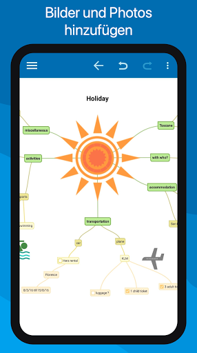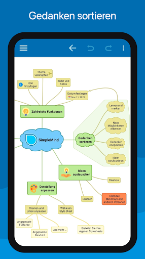 Mit hilfe von Mindmaps können Sie Ihre Gedanken sortieren, sich an Informationen erinnern und neue Ideen finden. Wir haben eine schöne, intuitive App entwickelt, so dass Sie mindmappen können, wann und wo Sie wünschen.