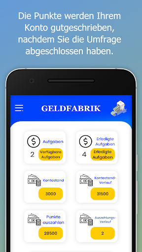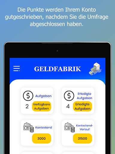 Sammeln Sie Punkte durch das Ausfüllen von Umfragen von verschiedenen Kategorien. Diese Punkte kann man danach gegen Gutscheine und weiteres eintauschen. Die Umfragen können alle möglichen Themen betreffen und Sie können sich die Umfragen aussuchen die Sie beantworten wollen. Sollten Ihnen das Thema nicht gefallen, können Sie die Umfrage ganz einfach abbrechen.