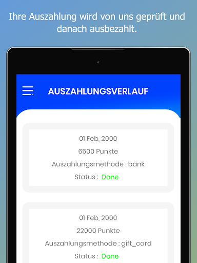 Nach dem Ausfüllen der Umfrage wird Sie von uns auf die Qualität der Antworten geprüft und innerhalb von 24 Stunden bestätigt. Danach werden Ihnen die Punkte auf Ihr Konto gutgeschrieben. Die Punkte können Sie ab 6500 in Gutscheine und mehr auszahlen.