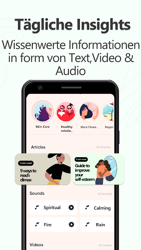 •Videos und Sounds, die Ihnen ein entspanntes und ruhiges Gefühl geben