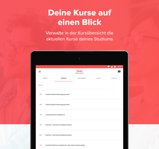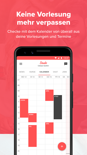 Kursübersicht, Stundenplan, Mail, Mittagsmenüs, Gutscheine, Jobangebote und Chat. Studo bietet dir alles in einer App! Lade die App herunter um die Liste aller unterstützten Städte und Hochschulen zu sehen.