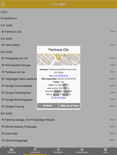 * Informationen wie z.B. Preis oder Telefonnummer von den meisten Garagen sehen